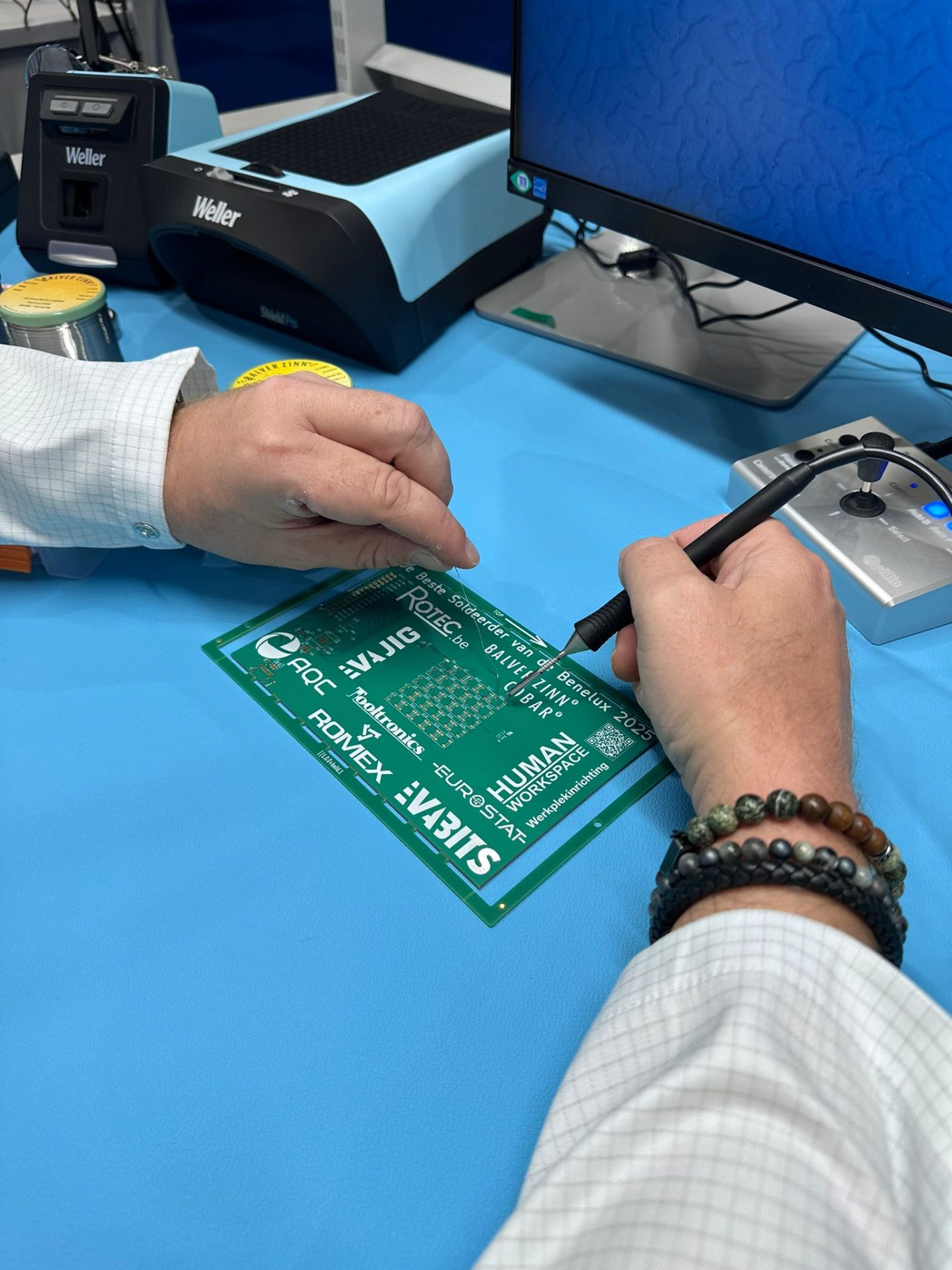 Op de beurs streden soldeerhelden om de titel “Beste soldeerder van de Benelux” op onze AQC-printplaten. Top dat iedereen meedeed – en natuurlijk gefeliciteerd aan de winnaar!